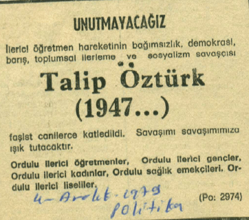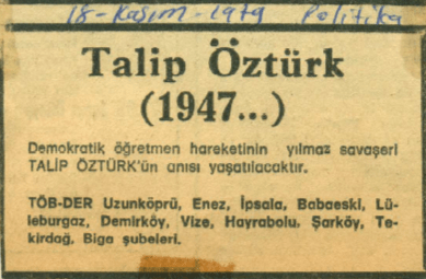 Talip Öztürk’ün katledilmesi, 1979 Türkiye’sinin karanlık atmosferinde yalnız bir öğretmeni değil,