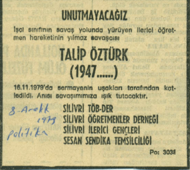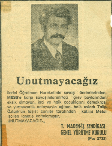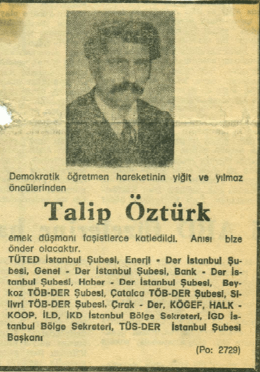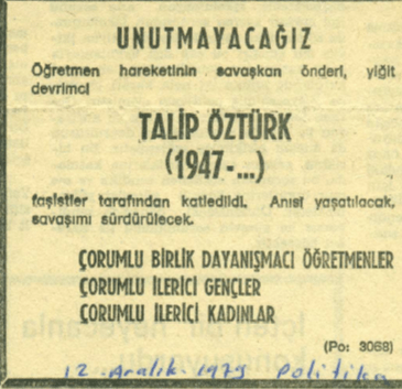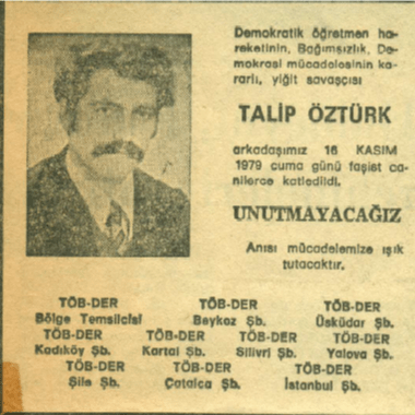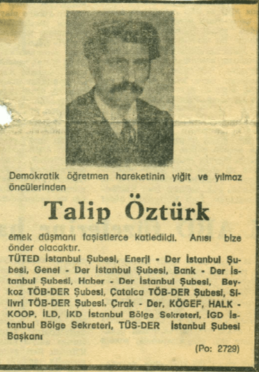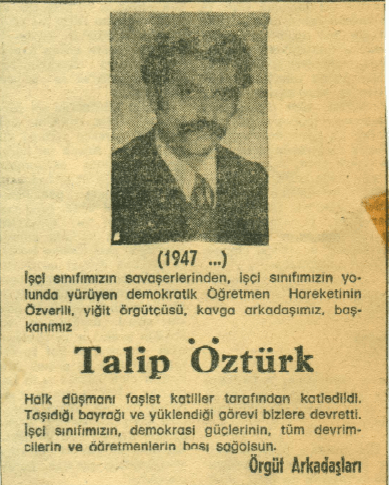 “Demokratik öğretmen hareketinin yiğit öncüsü Talip Öztürk’ü unutmayacağız.”