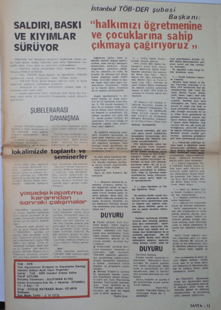 Aşağıda yer alan belgeler, 1976–1978 yılları arasında TÖB-DER İstanbul Şubesi’nin faaliyetlerinden ve Talip Öztürk’ün açıklamalarından arşiv niteliğinde örneklerdir.