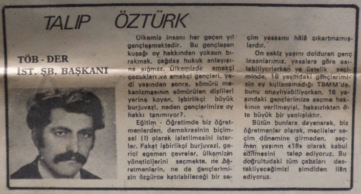 Talip Öztürk’ün kaleminden öğretmen mücadelesi, gençliğin rolü ve sınıf perspektifi.